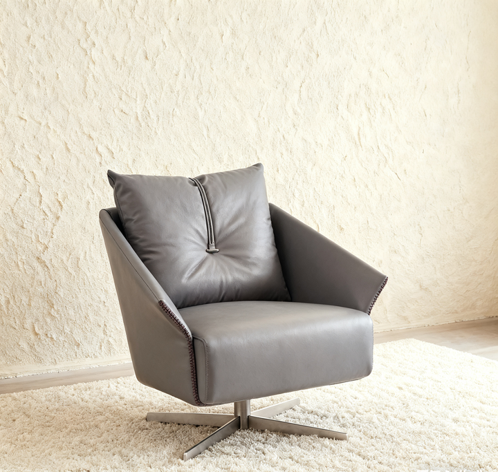 Daphne Chair is a crafted with top-grain Napa leather that exudes sophistication and elegance. The chair is designed with high-density foam that provides exceptional comfort and support, making it the perfect choice for relaxation. The chair features a durable and stylish brushed stainless steel swivel base, allowing for easy movement and rotation. The Daphne Chair is not only a beautiful addition to any living space, but also a functional one, providing both comfort and convenience. With exceptional craftsmanship and quality materials, this chair is built to last and provide comfort for years to come.
