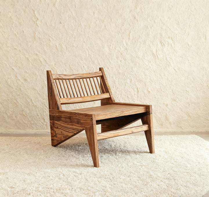 Jomma Lounge Chair, made from high-quality weathered elm wood that has undergone a unique and rustic weathering process, creating an old and rough texture that adds a touch of vintage charm to any living space.