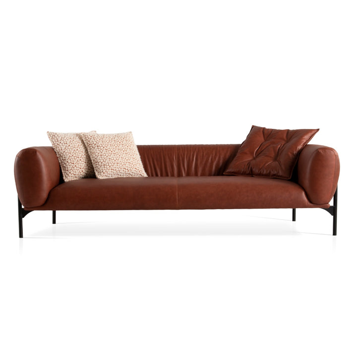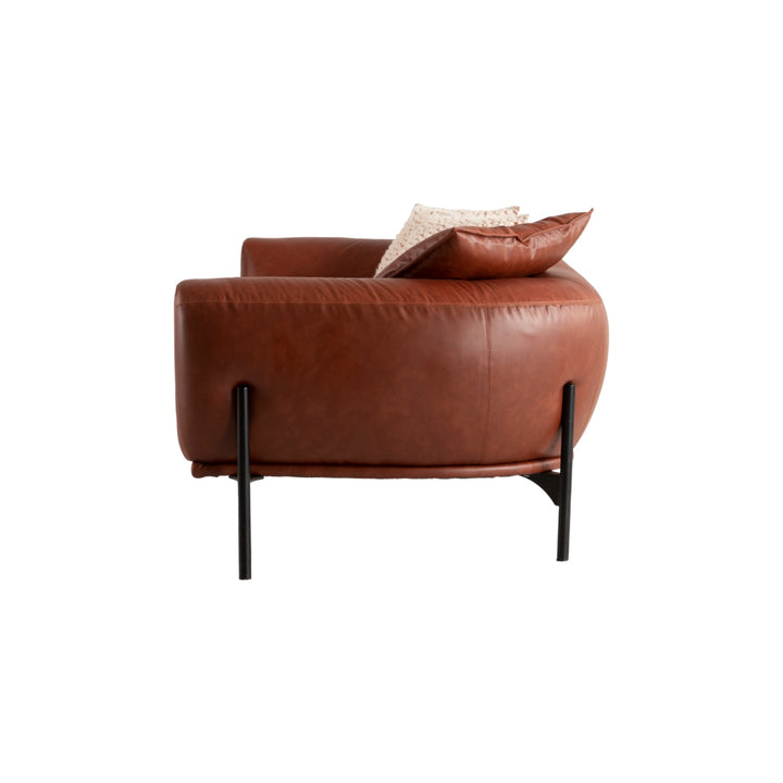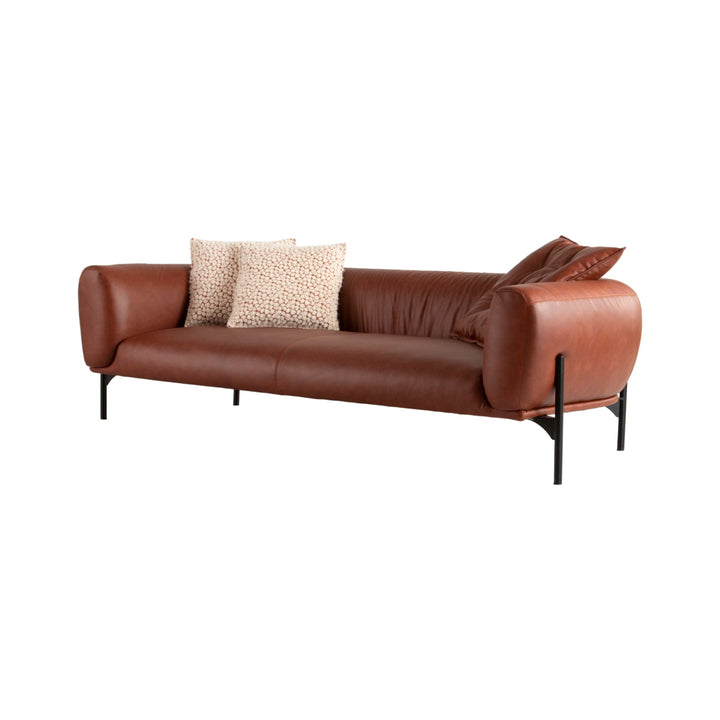 Crafted for refined comfort, this premium leather sofa features imported oil-waxed leather for a rich, vintage texture. Filled with high-density foam and plush down cushions, it offers exceptional support. The solid larch wood frame and 22cm matte black high-carbon steel legs ensure durability with a bold, modern industrial edge.