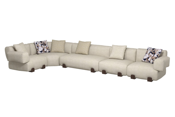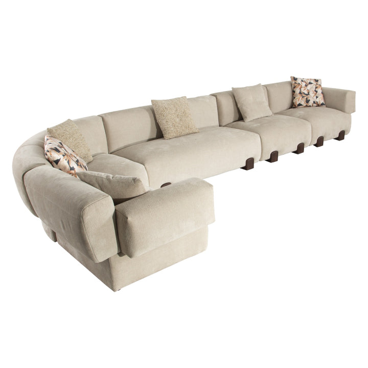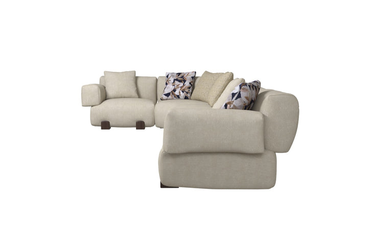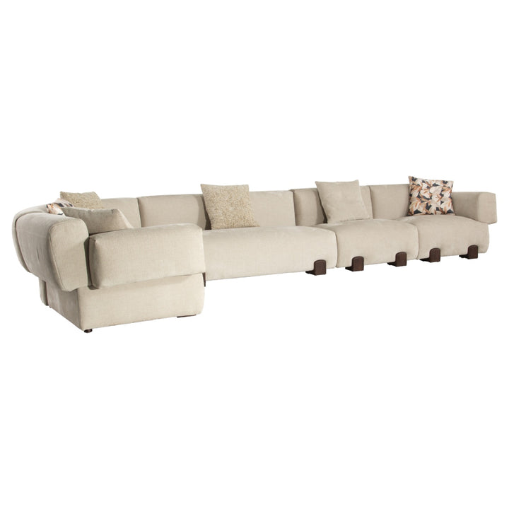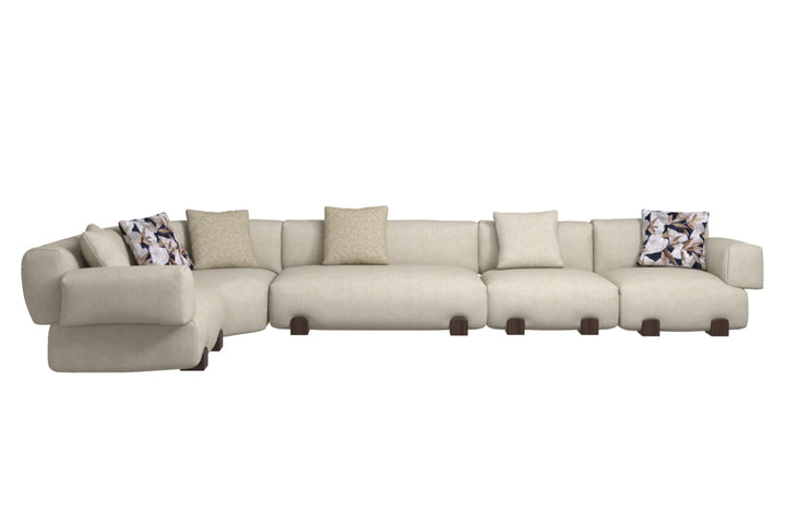 This L-shape sofa set combines luxurious comfort with timeless design. Upholstered in premium cotton-linen fabric, it features high-density foam and ultra-soft down-filled seat cushions. The sturdy frame is crafted from imported larch wood, supported by walnut-toned elm solid wood legs—bringing a warm, natural touch to any modern living space.