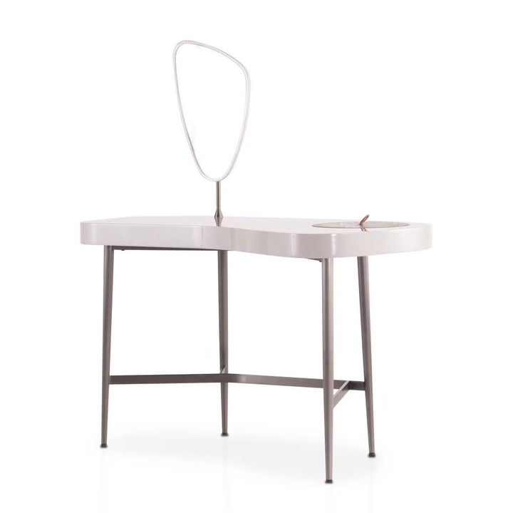 Crafted from E1-grade panels with a sleek lacquered finish, this dressing table exudes modern elegance. Featuring a brushed stainless steel frame with matte grey titanium electroplating and a clear glass mirror, it combines durability with refined style—perfect for elevating any contemporary bedroom or vanity space.
