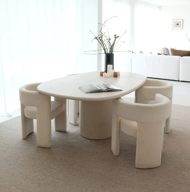Dining tables with an organic shape steal the show in interior design. From Wabi-Sabi to Japandi, to a combination with vintage, the organic shapes can find a place in any interior. Thanks to microskin, the table looks tough, robust and elegant at the same time.