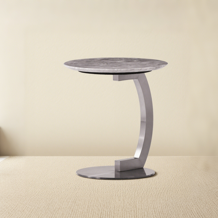 Giai 邊桌是一款時尚精緻的家具,將阿波羅灰石材的自然美與現代設計融為一體。桌面採用優質阿波羅灰石材製成,以其獨特而引人注目的圖案而聞名。堅固時尚的不銹鋼框架搭配灰色鈦拉絲飾面,與石材相得益彰。