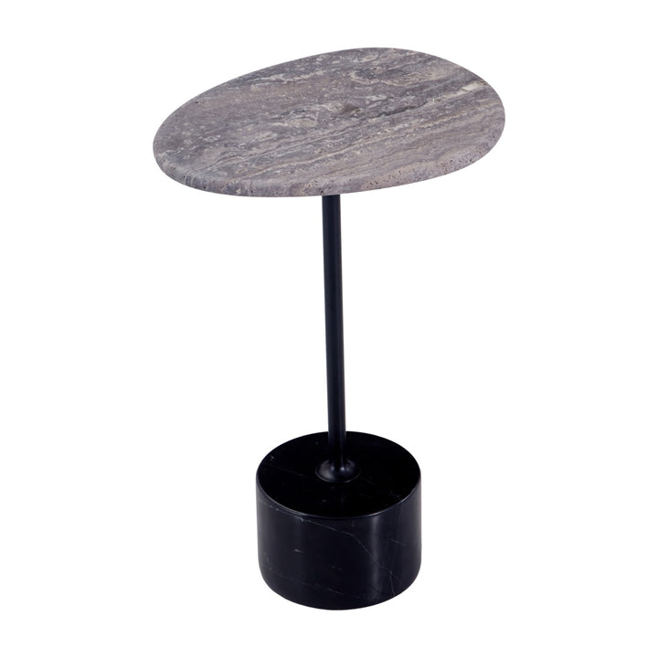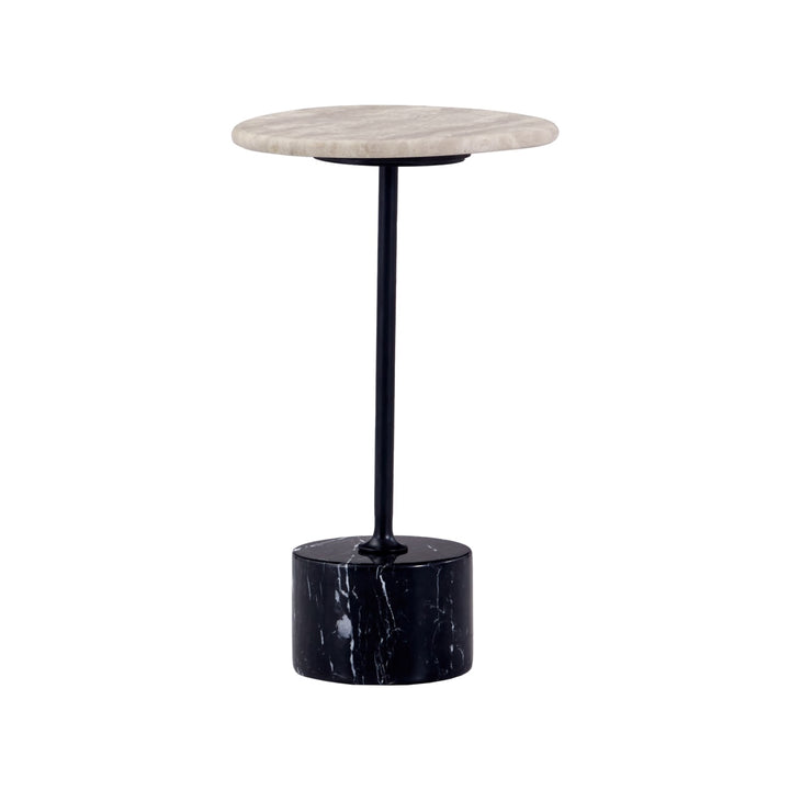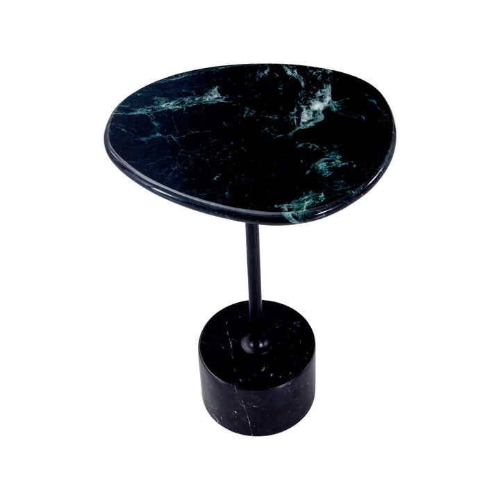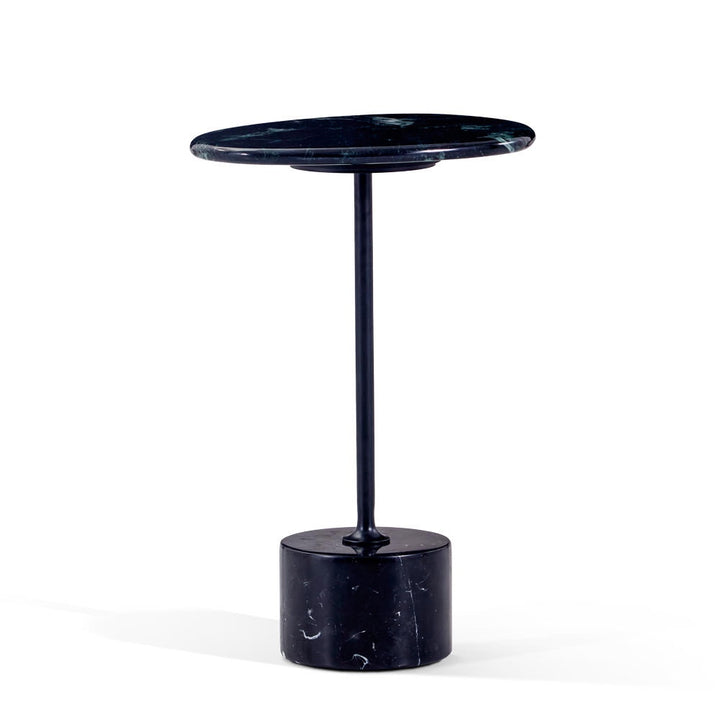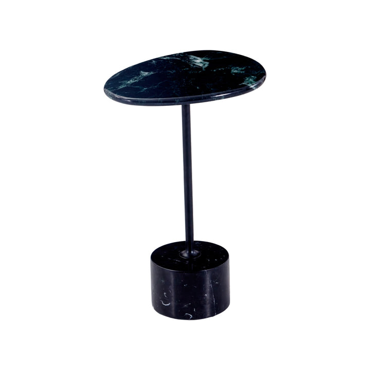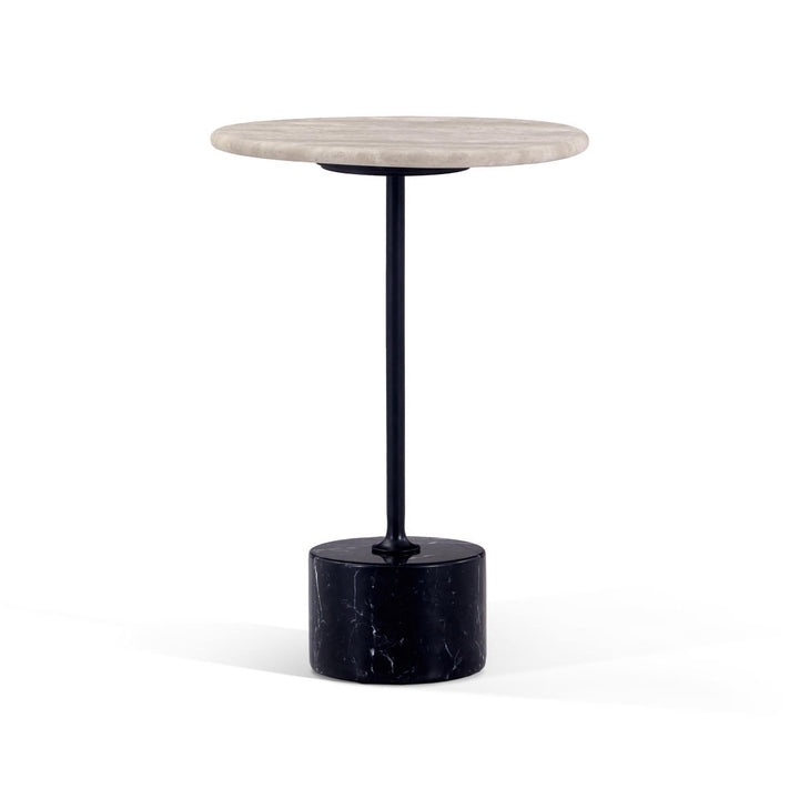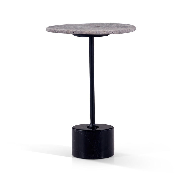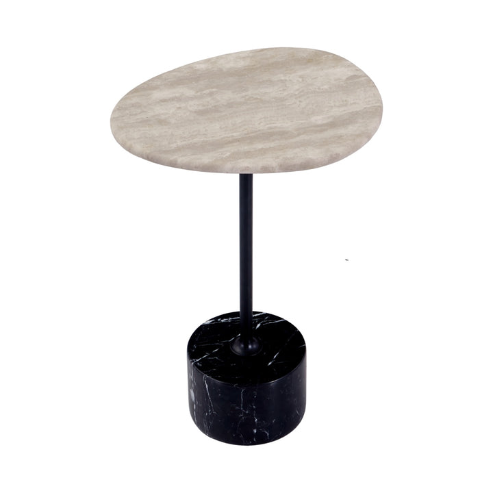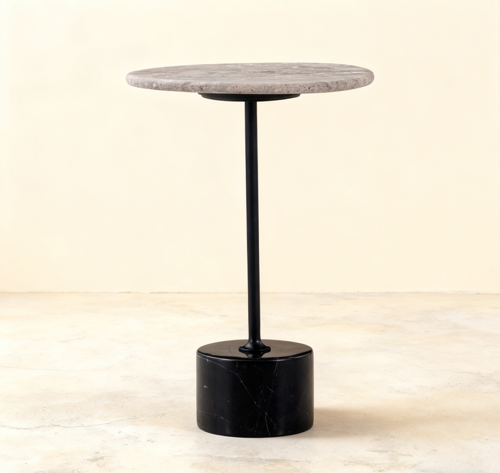 This modern side table features a sleek matte black carbon steel frame paired with your choice of a travertine or green natural marble top. Anchored by a striking black-and-white marble stone base, it blends sculptural elegance with refined materials—perfect for adding artistic depth to contemporary living spaces.