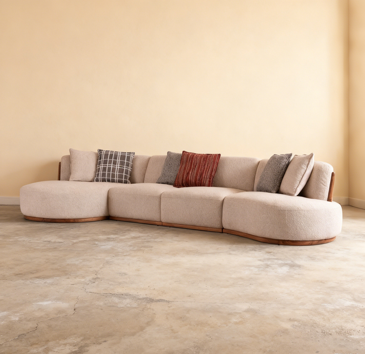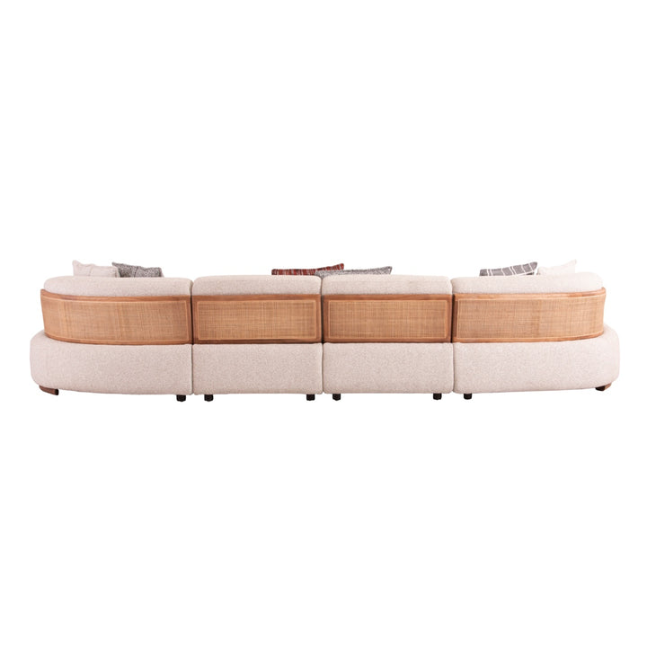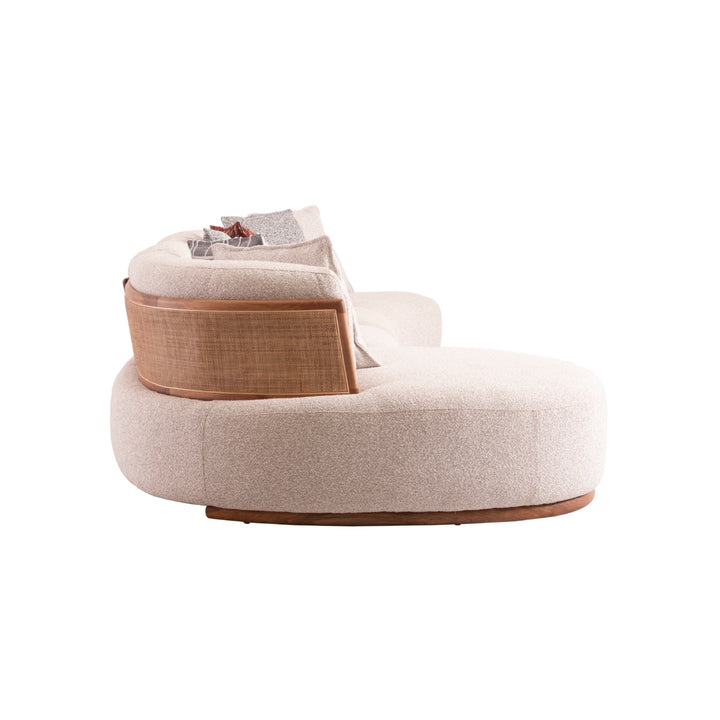Crafted with premium cotton-linen fabric, imported larch wood, and high-density sponge, this modular sofa blends comfort with durability. Featuring a unique elm wood woven rattan backrest and a solid elm wood base frame, it offers both aesthetic charm and sturdy support. Its versatile design fits seamlessly into modern living spaces, providing a stylish and cozy seating solution.