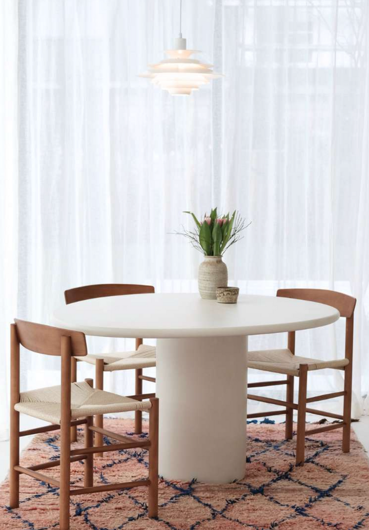 With its generous dimensions of W 140 cm x D 114 cm x H 75 cm, this table offers enough space for cosy dinners or stylish presentations. The soft, neutral colours fit perfectly into a variety of interior styles, from modern to classic