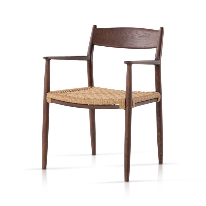 This elegant dining chair is crafted from white ash wood in a warm walnut finish, showcasing natural grain and timeless appeal. The seat features handwoven brown rope, adding texture and comfort....